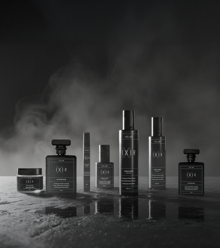 IXIR is a clean, alcohol-free face mist powered by hypochlorous acid (HOCl)—a molecule your body naturally makes. It helps reduce surface impurities, calm visible redness, and leave skin feeling fresh without fragrance or sting.