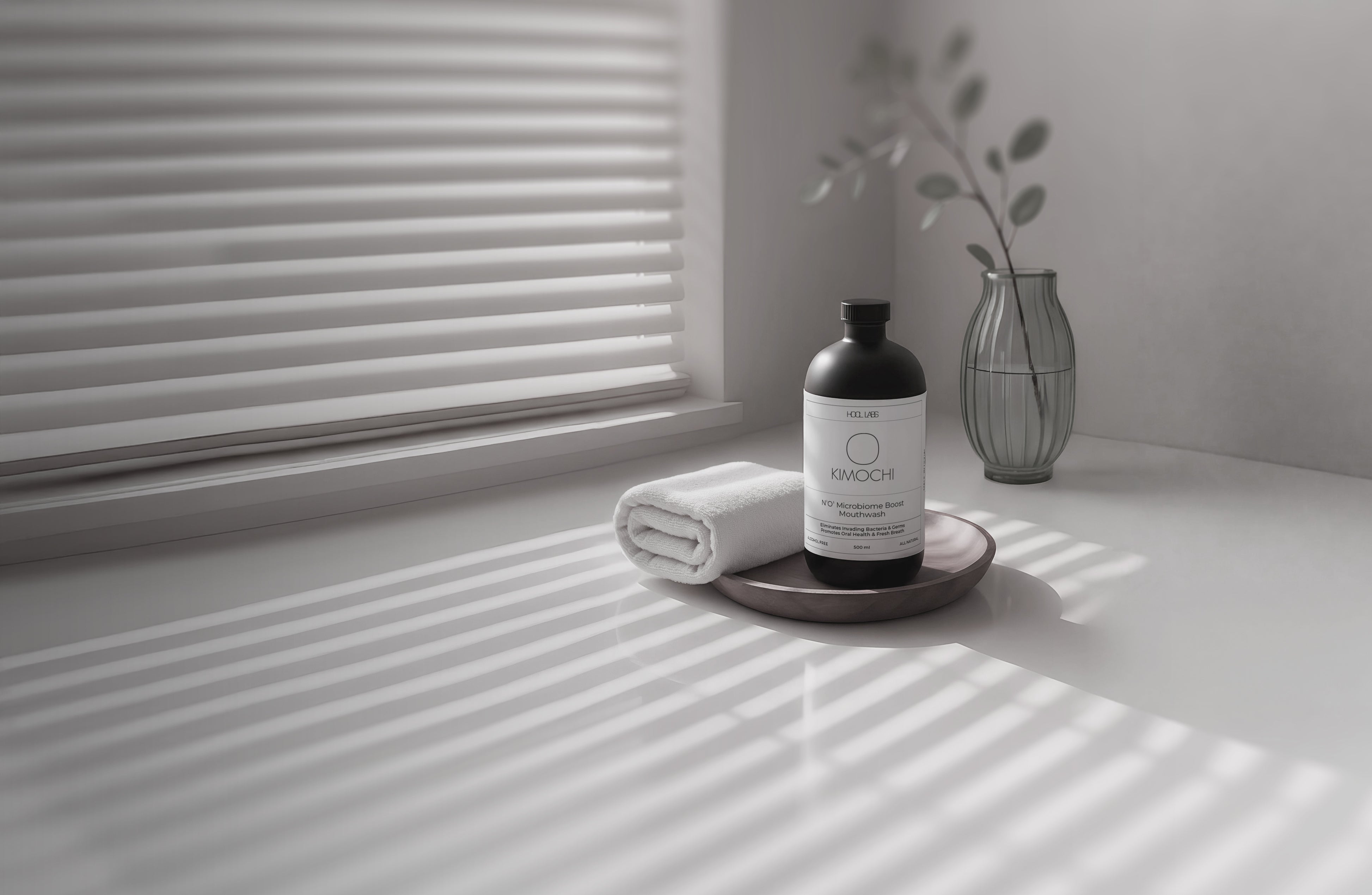 Shop nowKIMOCHI is a gentle, alcohol-free mouthwash powered by hypochlorous acid (HOCl)—a molecule your body naturally makes. It targets harmful bacteria and biofilm while respecting beneficial bacteria, so you get a clean mouth without the burn and without disrupting your oral microbiome.